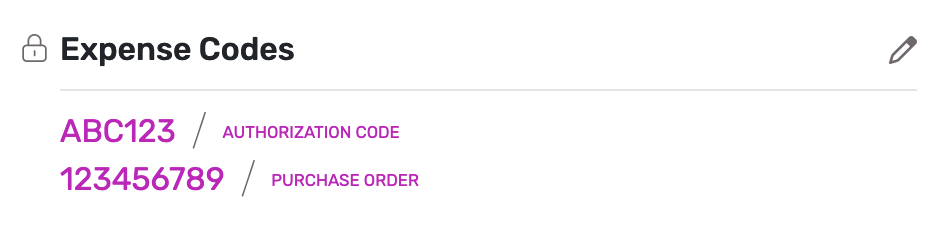 An **expense code** is a way for customers to tag, group, or track requests and invoices.
